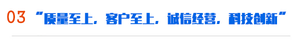 公司一貫奉行“質量至上,客戶至上,誠信經營,科技創(chuàng)新”的經營理念,以好的質量,好的服務,贏得了業界的一致好評和認可,公司總經理攜全體員工真誠歡迎各界朋友蒞臨公司參觀、指導和洽談業務。